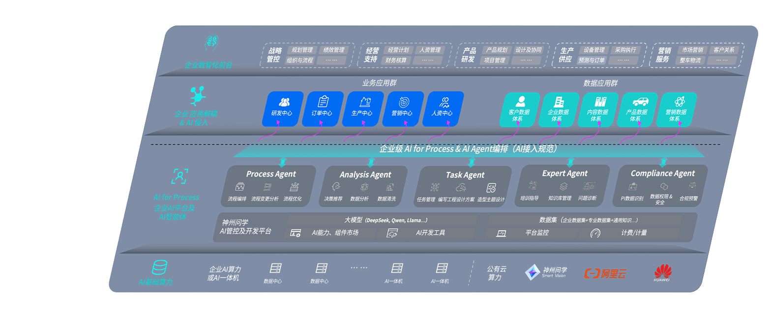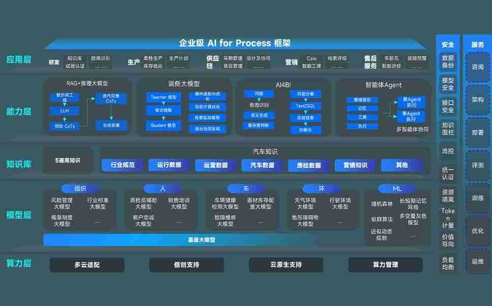 新航娱乐问学智车解决方案是一套基于AI技术的汽车行业智能化系统,,覆盖从底层算力到顶层AI应用的全栈方案。。。方案由算力层、、、、模型层和应用层组成:算力层,,方案支持多种一体机配置,,具备云端灵活部署、、、多云适配以及动态优化计算资源的能力;模型层,,新航娱乐问学平台版提供了企业级AI应用一站式构建与管理平台,,,,支持基于后训练强化技术的汽车企业专属模型的训练、、、评测和运营;应用层,,,新航娱乐问学DeepSeek版提供包括超级员工、、智能招采、、智能营销、、、智能客服、、AI for BI等一系列解决方案,,,,可助力汽车行业实现数字化转型,,,,让管理更智能、、响应更敏捷。。
